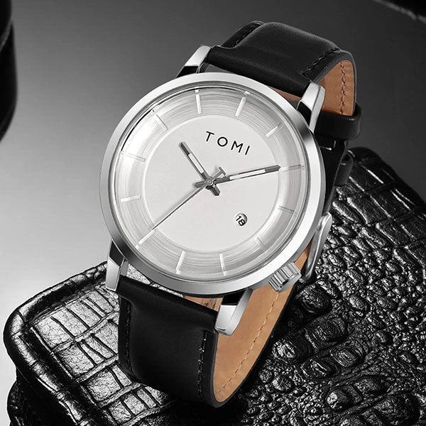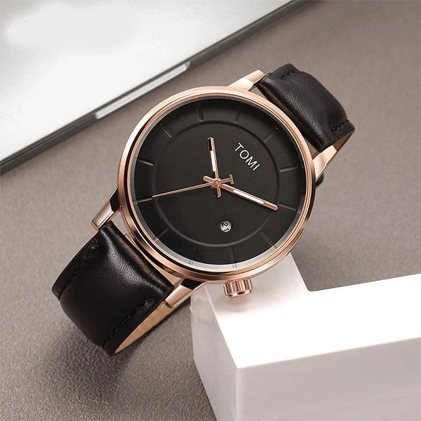 Top Brand TOMI Round Watch Casual Fashion Men Women Quartz Wristwatch Leather Strap Simple Dial Relogio Masculino with Box Male