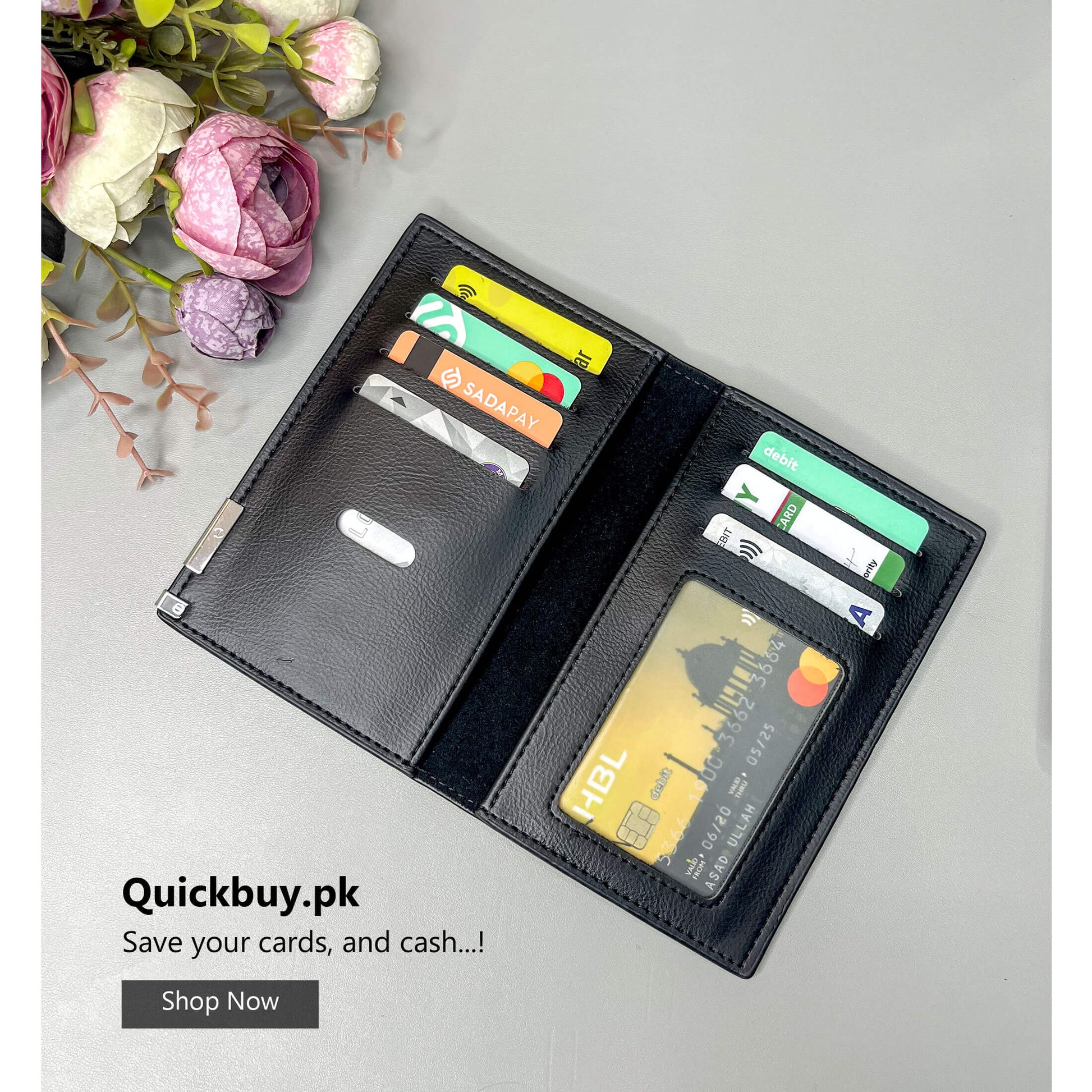- Function: Hold cash, credit card, coin, RFID blocking,7 Card Slots, 1 ID Windows